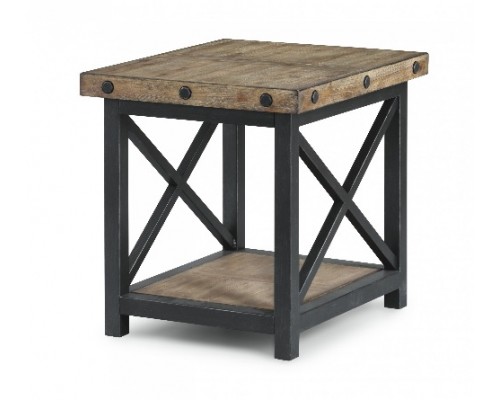 Drawing inspiration from vintage workbenches, the Carpenter lamp table is constructed of reclaimed wood planks and hand-worked metal frames. Exposed bolt heads underscore the aged, oiled finish that resembles an industrial steel framework. This lamp table adds character and personality to any room.