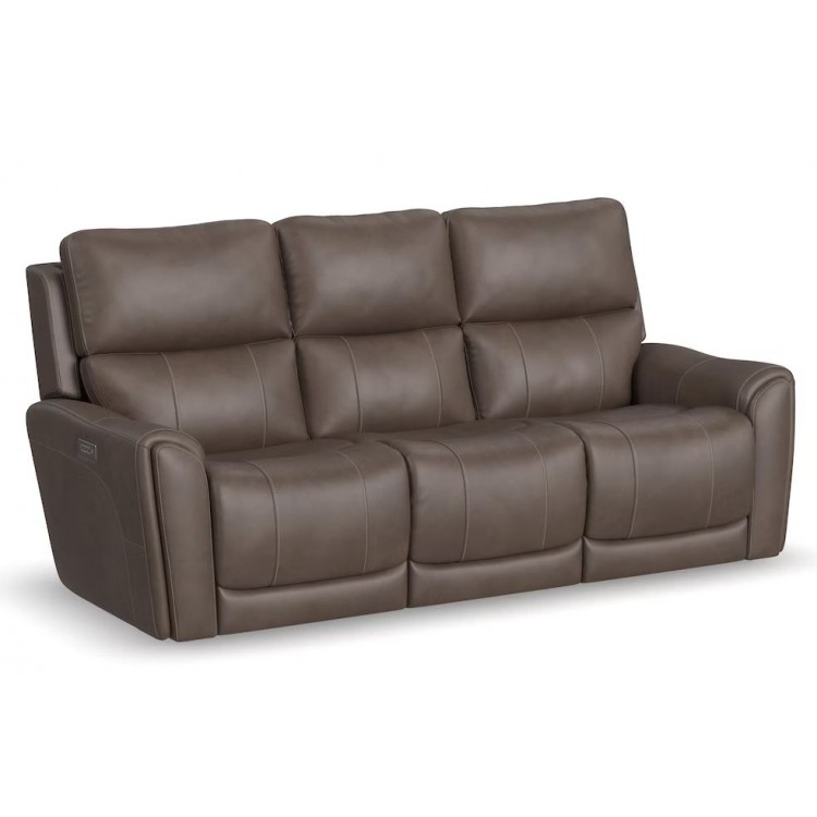 Power up and enjoy secretive perks with the Carter power reclining sofa. This piece features triple power and our Zero Gravity mechanism, allowing you to customize the recline, headrest and lumbar support on the two outside seats, including reclining to a zero-gravity position for the ultimate comfort experience. This sofa will be a statement in your home with its genuine leather look that is a durable, easy to clean fabric in two color choices. Flared arms, contoured seats and heavy thread stitching details give it a sleek, yet striking look. And it all comes with discreet storage perks, including pop-out cupholders in the arms and a flip-down center cushion that reveals a storage console, touch lighting and a wireless charging pad.