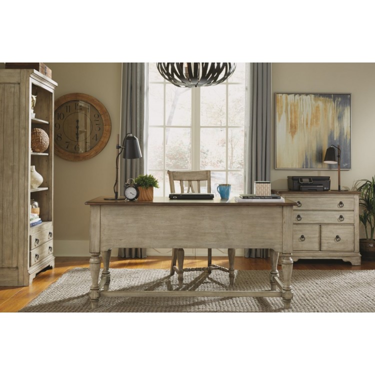 The Plymouth writing desk boasts a shabby chic design with contrasting wood finishes and paneled construction. With an overall whitewash finish accented by a dark surface, Plymouth is ideal for those who like a bit of vintage design in their modern lives.