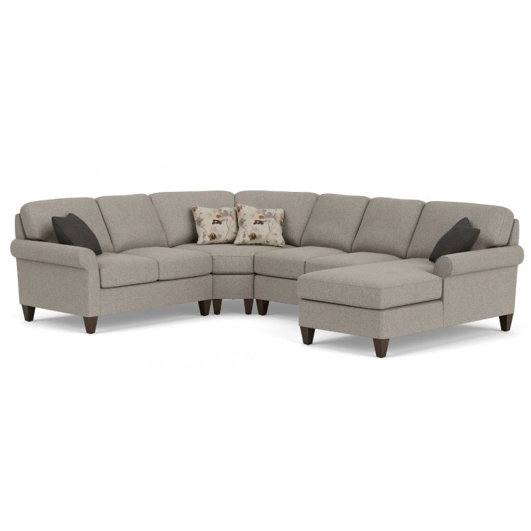 Lean back and look sophisticated in this Westside classic. Rolled arms and tapered wooden legs elevate an angled profile, so you can sit back and relax elegantly. Soft boxed seat and back cushions paired with quality construction provide years of comfortable seating for you and your family. With mixed seating options, this roomy sectional takes the spotlight in large living spaces.